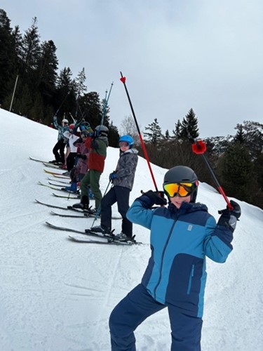 Die Schifahrer fuhren dann von dort mit dem Bus zur Rosshütte. Obwohl wir verschiedene Niveaus hatten kamen wir alle gut miteinander zurecht und hatten viel Spaß !