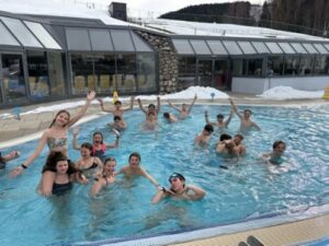 Am Mittwch waren wir nach dem Sifahren und Langlaufen noch im Olympiabad Seefeld. Dort sind wir die Wildwasserrutsche gerutscht und im Aussenbecken getaucht. In Restaurant haben wir Mittagessen.